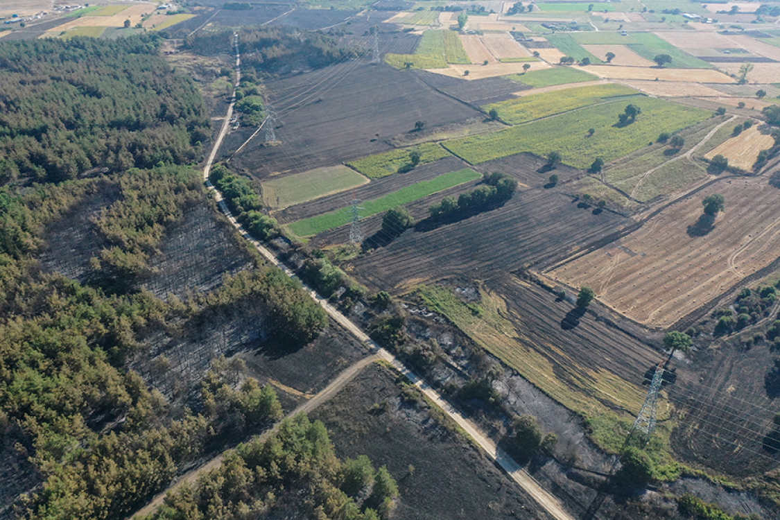 Hasar tespitiyle ilgili çalışma başlattıklarını anlatan Yılmaz, "7 bin 500 dönüm civarında ormanımız var. Bunun 766 dönümü, dekarı zarar görmüş durumda. 131 dekar biçilmiş alanımız vardı. Bir tür anız diye düşünün, orası zarar gördü. Arıcılık Geliştirme-Uygulama ve Araştırma Merkezimiz var. Orada 30 arı kovanını kaybettik ama merkezin kendisini kurtardık." dedi.