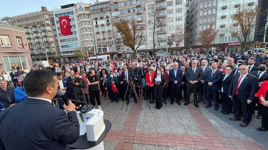 İYİ Parti İl Başkanı Selçuk Türkoğlu da Cumhuriyet sevdalılarına seslenerek, "Milletimizin kendi kendini özgürce yönetebileceği bir yönetim şekli olan Şanlı Cumhuriyetimizi her her zaman korumaya da, kollamaya da, savunmaya da kararlıyız" dedi. Türkoğlu şunları söyledi: