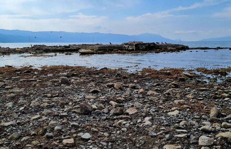 Bazilikanın büyük bölümü gölün yüzeyinde görünür hale gelerek kıyıyla birleşti.