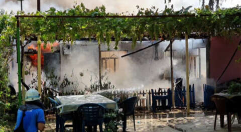 Ekiplerin çalışması sonucu söndürülen yangın sonrası ev kullanılamaz hale geldi.