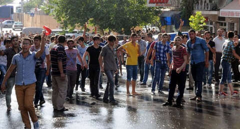 Uyarılara rağmen dağılmayan gruba belediye kavşağında polis zırhlı araçlardan basınçlı suyla müdahale edildi. Dağılan gruptakiler ise müdahaleye karşılık TOMA'lara taş attı. Polisin yetersiz kalması üzerine olay yerine Jandarmalar geldi. Grubun 'En büyük asker bizim asker' sloganıyla karşıladığı grup, jandarmaların önüne geçerek polisleri yuhaladı. İl Jandarma Komutanı Albay Coşkun Doğan ve Emniyet Müdürü Ümit Yaşar Adalar'ın ikna etmeye çalıştığı grup, kavşakta oturarak Büyükşehir Belediye Başkanı Fatih Mehmet Erkoç'u istifaya çağırdı. 'Erkoç gelecek, hesap verecek' sloganları atan grubun bekleyişi sürüyor.