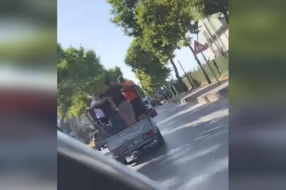 Mudanya İlçe Emniyet Müdürlüğü ekipleri, açık kasa kamyonetin sürücüsünün trafikte tehlikeli seyrettiğine dair sosyal medyada paylaşılan görüntü üzerine çalışma başlattı.
