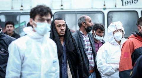 Karacabey'de tarlalarda çalışan mevsimlik tarım işçileri Atatürk Spor Salonu'na götürüldü.