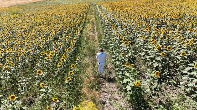 Karacabey Ovası ayçiçeklerinin açmasıyla adeta tabloya döndü. Sarı tarlaların güzelliği sosyal medya fenomeni Süleyman Ateştepe tarafından drone kamera ile görüntülendi. Geniş tarlalarda boy veren ayçiçekleri, adeta tabloyu andıran görüntüler oluşturdu. Büyüleyici manzara drone ile havadan görüntülendi. Karacabey Ovası'nda açan ayçiçekleri, hem bölge halkının hem de doğa fotoğrafçılarının ilgisini çekiyor. Sarının enerjisiyle dolan ovada oluşan renk cümbüşü, görenleri kendine hayran bırakıyor. Üreticiler, bu güzelliğin ardında aylar süren emeğin yattığını belirterek, ayçiçeğinin hem tarım hem de görsel açıdan bölgeye değer kattığını ifade ediyor. Hasat dönemine kadar Karacabey Ovası, doğanın en güzel tablolarından birine ev sahipliği yapmayı sürdürecek.