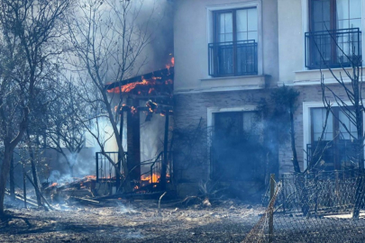 Çanakkale’nin Kepez beldesinde tarım arazisinde başlayarak ormanlık alana sıçrayan yangında Güzelyalı bölgesindeki bazı villalar da yandı.