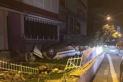 Kontrolden çıkan otomobil sitenin duvarı aşıp takla attı