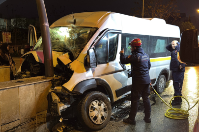 Kontrolden çıkan servis minibüsü alt geçidin duvarına çarptı