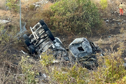 Kontrolden çıkan tır şarampole uçtu, sürücü şans eseri kurtuldu