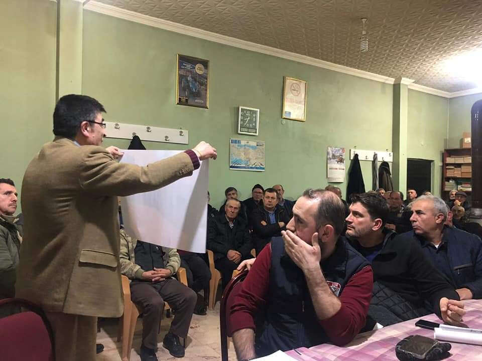 Kimya Mühendisleri Odası 2. Başkanı Vedat Sezer, (soldaki) 13 Ocak'ta köye giderek projeyle ilgili halkı bilgilendirdi.