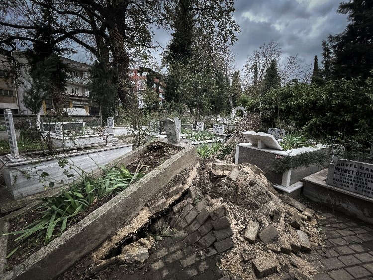 Çok sayıda mezar hasar görürken bazı mezarlar da yerlerinden çıktı.