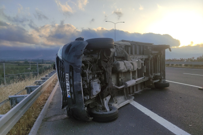 Bursa'nın Orhangazi ilçesinde lastiği patladıktan sonra devrilen kamyonetteki 2 kişi yaralandı.