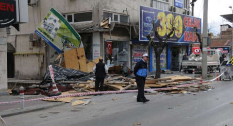Çok sayıda ev ve iş yerinin zarar görmesine yol açan kuvvetli lodos, Gazcılar Caddesi'nde ise bir apartmanın çatısını uçurdu. Çatının düşme anı bir iş yerinin güvenlik kamerası tarafından saniye saniye görüntülendi. Kuvvetli lodos, yayalara da zor anlar yaşattı.