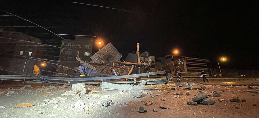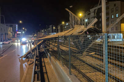 Bursa'da kuvvetli lodos nedeniyle 3 katlı binanın uçan çatısı, BursaRay güzergahına düştü. Olay nedeniyle Kestel-Arabayatağı arasındaki seferler otobüslerle sağlandı.