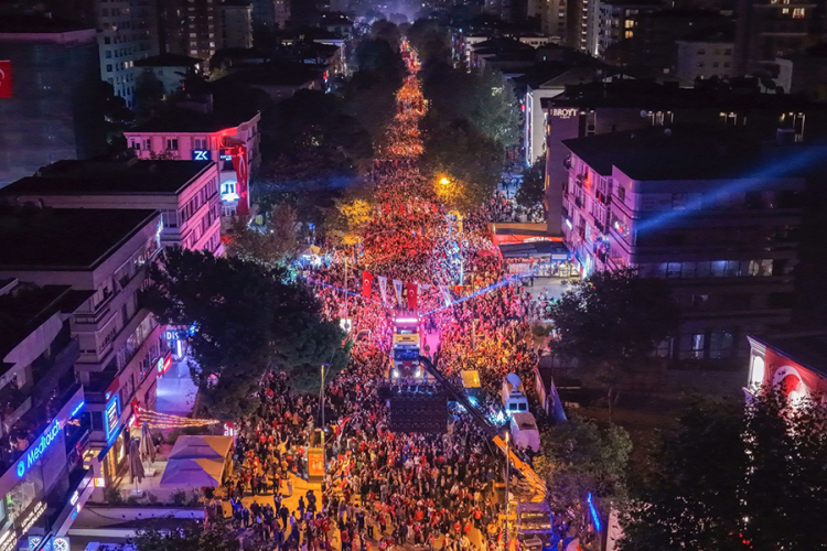 Katılımcılar ellerinde Türk bayraklarıyla ve meşalelerle bando takımı eşliğinde Cumhuriyet ve İnönü caddeleri güzergahından Milli İrade Meydanı'na yürüdü. İl Gençlik Merkezi öğrencileri yürüyüşte 50 metrelik Türk bayrağı taşıdı.