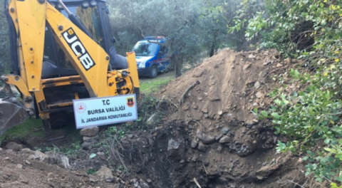 Bursa'nın Mudanya ilçesi Tirilye Jandarma Karakol Komutanlığı ekipleri, Çanaklı Çeşme mevkisinde kaçan kazı yapıldığını tespit etti.