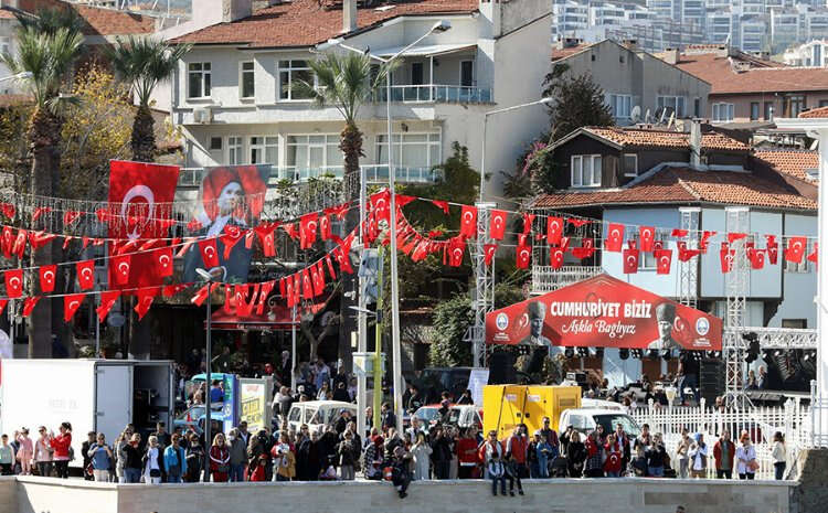Cumhuriyet'in ilanının 99. yıldönümü, Mudanya’da gurur ve coşkuyla kutlandı. Mudanya sokaklarını, bayram sevinci sardı, Cumhuriyet coşkusu denize taştı. yelkenli tekneler, yaptıkları Cumhuriyet korteji ile yine unutulmaz bir kutlamaya imza attı.