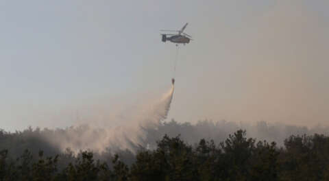 Karadan yangın söndürme araçlarıyla yürütülen çalışmalara iki helikopterle de destek sağlandı.