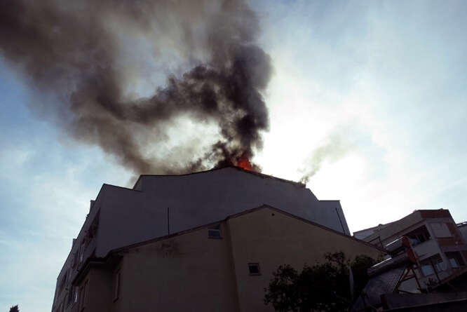 Bursa'nın Mudanya ilçesi Hasanbey Mahallesi Osmaneli Gör Sokağı'nda bir binanın çatı katındaki dairede yangın çıktı. Çamaşır makinesinin elektrik aksamından çıktığı iddia edilen yangın kısa sürede daireyi sardı.