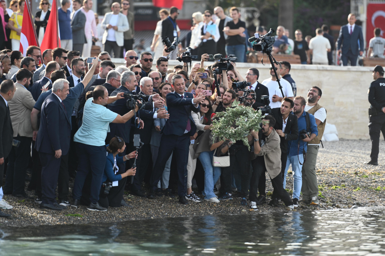 Mütareke Evi Müzesi'nde gerçekleştirilen “Tarih Yapan İnönü” sergisinin ziyaret edilmesinin ardından, CHP Genel Başkanı Özgür Özel, Mudanya Belediye Başkanı Deniz Dalgıç ve protokol üyeleri, barışın simgesi zeytin yapraklarından hazırlanan çelengi denize bırakarak, Mudanya'dan tüm dünyaya barış çağrısı yaptılar.
