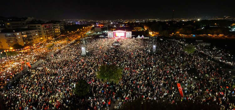 Alanı dolduran yüzbinlerle birlikte 100 yıllık bir gururu paylaştıklarını kaydeden Başkan Erdem, sözlerini şöyle tamamladı: