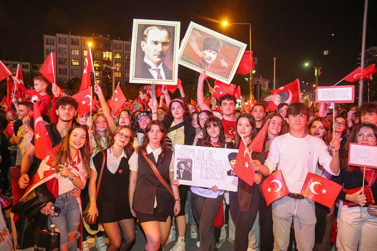 Cumhuriyet’in 100. Yılı'nı bir aya yayılan çok yönlü etkinliklerle kutlayan Nilüfer Belediyesi, geleneksel Cumhuriyet Yürüyüşü’nü ise bu yıl rekor bir katılımla gerçekleştirdi. Akın akın gelerek FSM Bulvarı’nı dolduran, meydanlara sığmayan yüz binlerce Bursalı, 100. Yılı'nda Cumhuriyet’e sahip çıktığını gösterdi. Her zamanki gibi Acıbadem kavşağından başlayan yürüyüşte çocuğu genci yaşlısıyla her yaştan insan ellerinde bayraklar, dillerinde marşlarla FSM Bulvarı ve hastane alanını adeta kırmızı-beyaza boyadı.