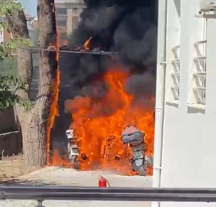 Bursa'nın Mustafakemalpaşa ilçesindeki Mesleki Eğitim Merkezi'nin bahçesinde, öğrencilerin kullandığı 6 motosiklet yanarak kullanılmaz hale geldi.