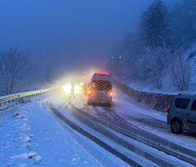 Karayolları Bölge Müdürlüğü ekipleri, yolu açık tutmak için kar temizleme ve tuzlama çalışmalarını sürdürüyor.