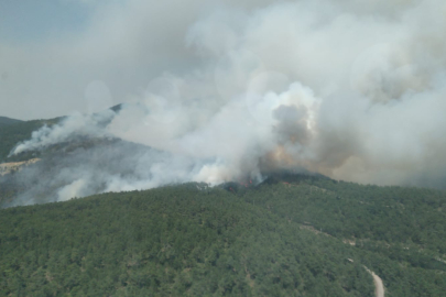 Ekipler, yerleşim yerlerine uzak, rüzgarın da etkili olduğu bölgede yangını söndürmek için yoğun çaba sarf ediyor.
