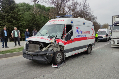 Orhangazi'de hasta taşıyan ambulans kamyona çarptı: 2 yaralı