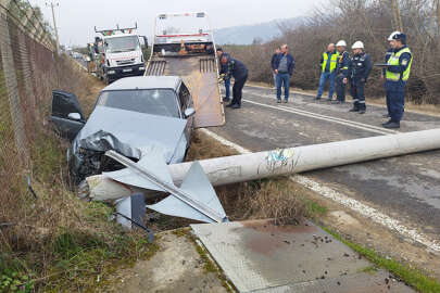 Bursa'nın Orhangazi ilçesinde kontrolden çıkarak yol kenarındaki beton elektrik direğine çarpan otomobilin sürücüsü yaralandı. Çarpmanın şiddeti ile direğin devrilmesi sonucu bölgede elektrikler kesildi.