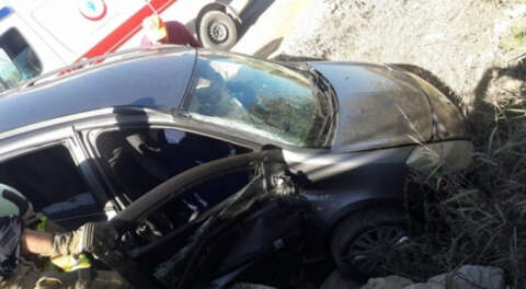 Kazada otomobil şöförü Mükerrem Ş. ile yanında yolculuk yapan Safiye S. ve Emine Ç. otomobilde sıkışarak yaralandı.