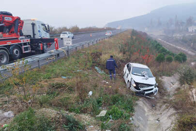 Alınan bilgiye göre, İstanbul'dan Bursa yönüne seyreden B.K. (23) idaresindeki 16 NPA 32 plakalı otomobil, Karsak Kavşağı yakınında kontrolden çıkarak bariyerleri aşıp şarampole devrildi.