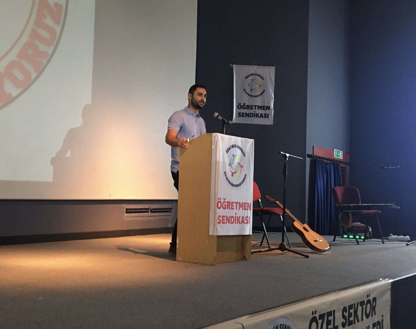 Özel Sektör Öğretmenleri Sendikası Genel Başkanı Eren Edebali, TMMOB Eğitim ve Kültür Merkezi’nde konuşma yaptı.