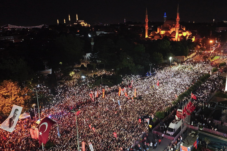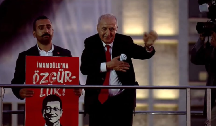 "Sevgili gençler, değerli emekçiler, emekliler burada hep birlikteyiz. Gözümün içine bakın, gözünüzün içine bakıyorum. Siz 19 Mart'ta da bir hafta boyunca 7 gün 7 gece Saraçhane'de, omuz omuza, yan yana birlikte durdunuz. Gecenin karanlığında adaleti haykırdınız. Birliğimizi, beraberliğimizi savundunuz. İradenizi savundunuz. Seçtiğinizin arkasında durdunuz. Siz faşizme karşı, darbecilere karşı, cuntaya karşı boyun eğmeyenlersiniz. Ben hepinizle gurur duyuyorum.