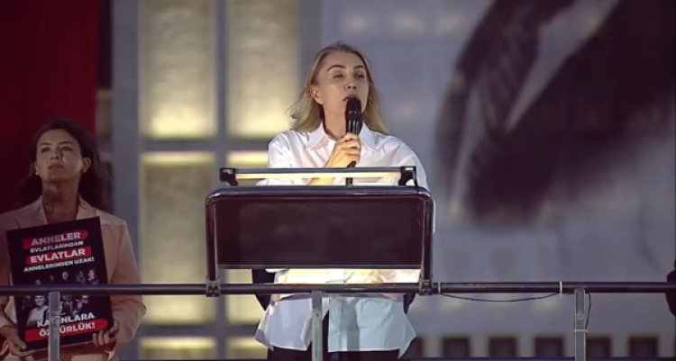 Ekrem İmamoğlu'nun eşi Dilek İmamoğlu, kürsüden Saraçhane'de toplanan halka seslendi Dilek İmamoğlu şöyle konuştu: