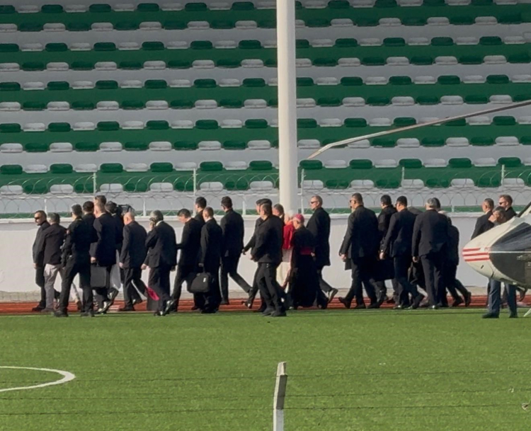 Birinci İznik Konsili'nin 1700'üncü yıl dönümü anma etkinlikleri katılmak üzere Atatürk Havalimanı'ndan helikopterle hareket eden Papa 14. Leon, 15.10 sularında İznik'e geldi. Papa'yı taşıyan helikopter ilçe stadyumuna indi.