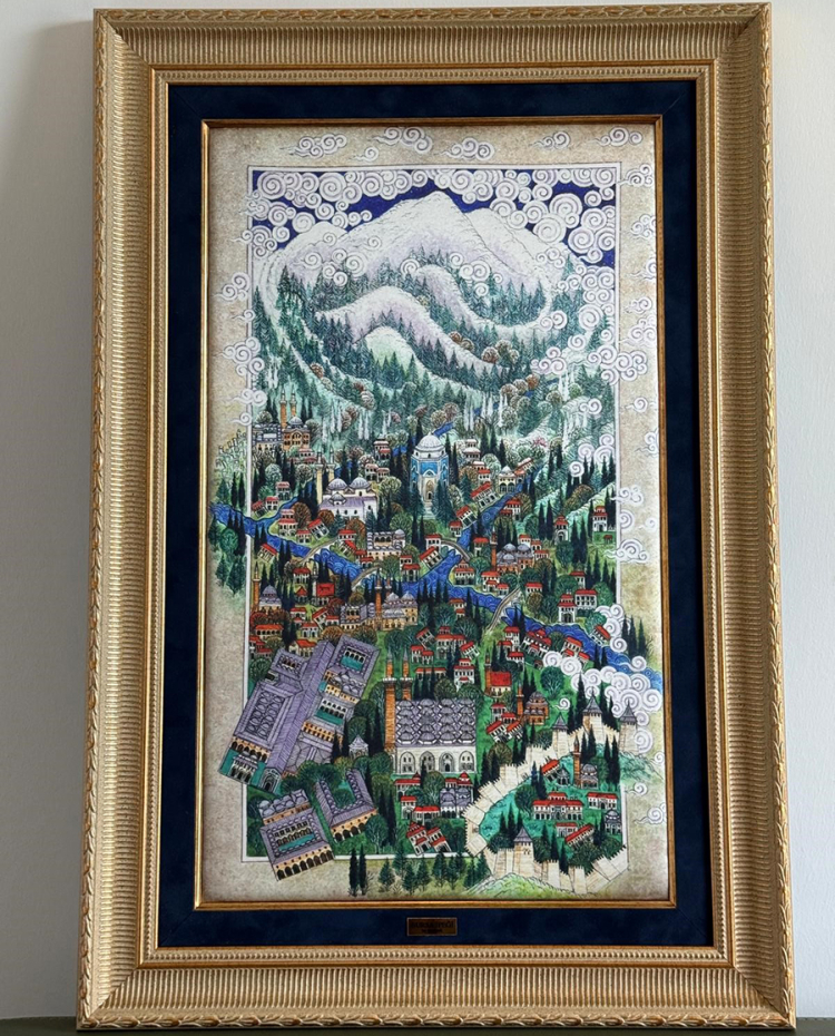 Papa 14. Leo’ya ayrıca Osmanlı’nın ilk başkenti Bursa’nın Uludağ’dan geleneksel bir minyatür takdim edildi. Bursa ipeği üzerine yapılan bu eser, Tarihi İpek Yolu mirasına gönderme niteliği taşıyor. Nusret Çolpan çizimi olan modern minyatür, kentin ipekçilik geçmişini ve Yeşil Bursa’nın tarihini yansıtan detaylarla dikkat çekiyor.