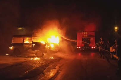 Alevler kısa sürede kamyoneti sararken, ihbar üzerine olay yerine gelen itfaiye ekipleri yangını söndürdü.