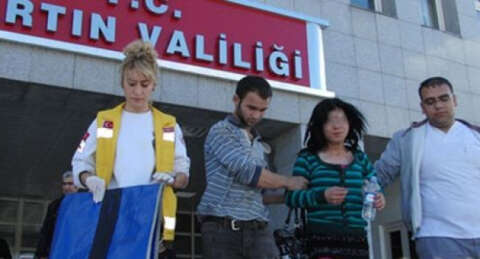 Bartın'da işi olduğu gerekçesiyle valilik binasına girmek isteyen bir travesti, mesai saati olmadığı gerekçesiyle polis tarafından içeriye alınmayınca sinir krizi geçirdi.