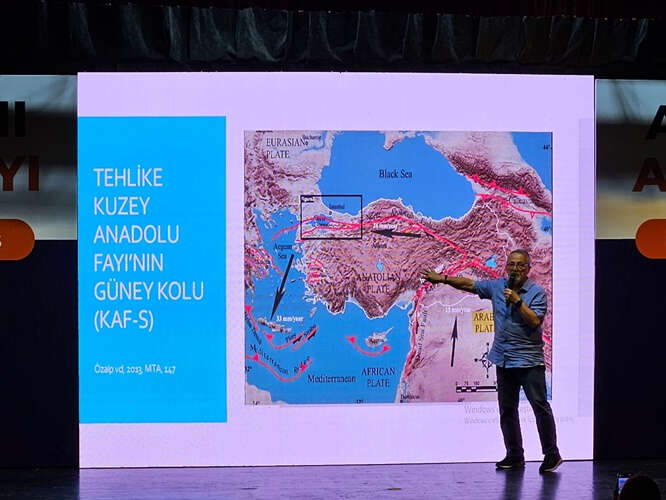 Prof. Dr. Naci Görür, beklenen Marmara depremine değindikten sonra kentleri depreme hazır hale getirmek için yapılması gerekenleri anlattı. 13 milyon yıldır depremlerin bu coğrafyada devam ettiğini söyleyen Görür, "Depremlerin bitmesini beklemeyin. Depremin bitmesi demek dünyanın ölmesi demektir. Bu nedenle depreme dirençli yerleşim alanları yapmamız gerekir. Depreme dirençli yerleşim alanlarını Japonya, Meksika, Şili, İtalya yapmış. Biz neden yapmıyoruz? Bizde olmayan şey, siyasi irade. Depremi önceleyen, önemini kavramış hükümet yok. Dünyada hiçbir ülke bizim kadar depreme hazırlanmamıştır rapor üzerinde. 'Depremde ne yapalım' diye yüzlerce rapor görürsünüz. Ama yapılan şey oldukça az. Bizim amacımız, deprem dirençli yerleşim alanlarına sahip çıkarak insanımızın ölmemesini sağlamak" diye konuştu.