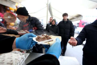 Bursa'da faaliyet gösteren bir firma, kuruluşunun 3'üncü yılı dolayısıyla pişirdiği 1 ton cağ kebabını vatandaşlara ikram etti.