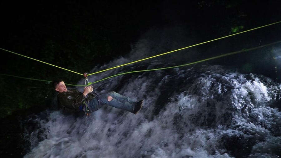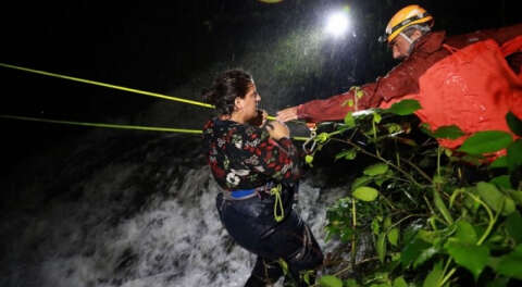 Bu kişiler, AFAD ekiplerinin yaklaşık 1 saat süren çalışması ile bahçeye kurulan raylı halat sistemiyle, debisi yükselen dere üzerinden çekilerek güvenli bölgeye alındı.