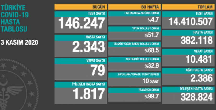 Salgında 3 Kasım; 79 can kaybı, 2343 yeni 'hasta'