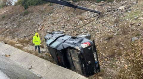 Takla atan otomobilin sürücüsü yaralı kurtuldu
