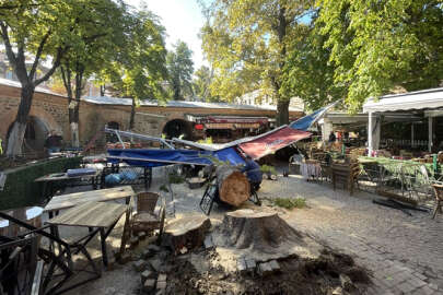 Bursa'da, tarihi Koza Han'ın yan tarafında bulunan çay bahçelerinin bulunduğu bölümdeki bir ağacın devrilmesi sonucu hasar oluştu.