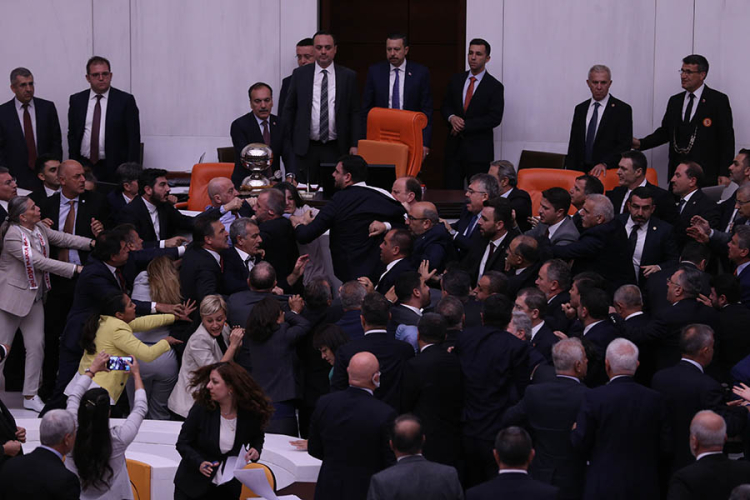 Şık'ın konuşması sırasında AKP'li milletvekilleri tekrar kürsüye yürüdü ve yumruk yumruğa kavga başladı.