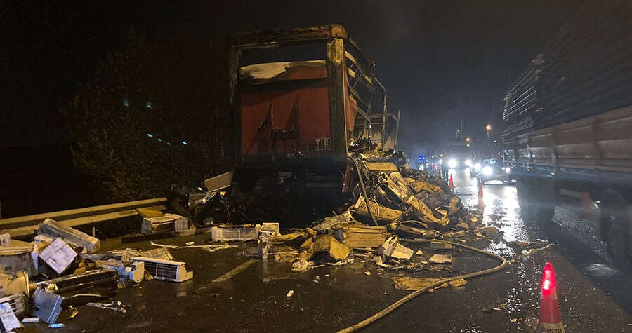 Tırda yangın; Klimalar kullanılamaz hale geldi