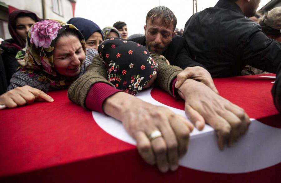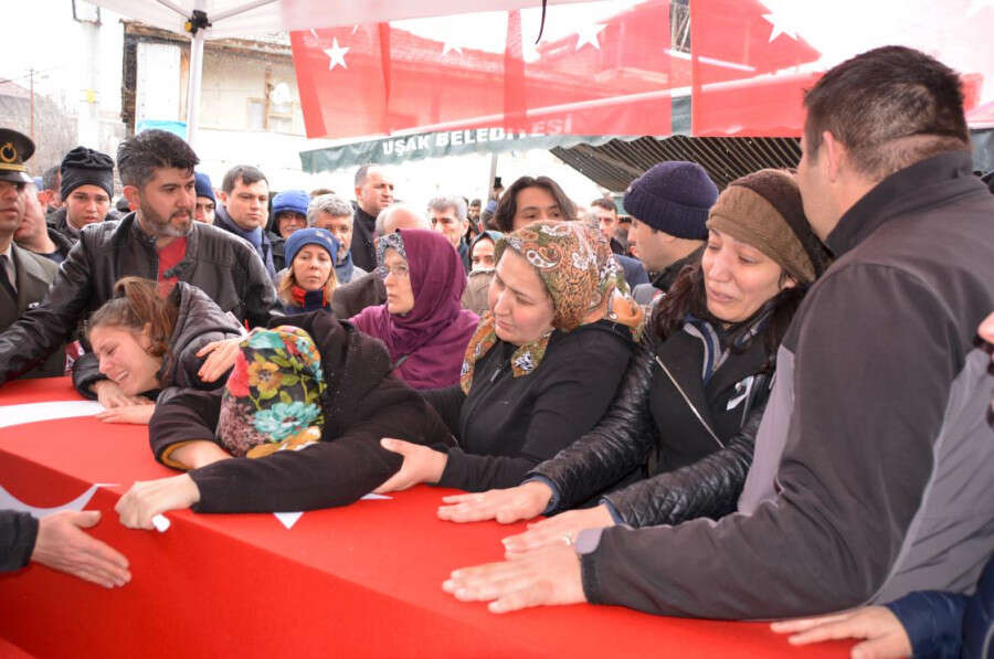 Anne Menşure Gürdal ve baba Hüseyin Pekel, yakınlarının desteğiyle ayakta durabildi. Menşure Gürdal, elindeki oğlunun fotoğrafı ve beresini öpüp tabutuna sarılarak gözyaşı döktü.