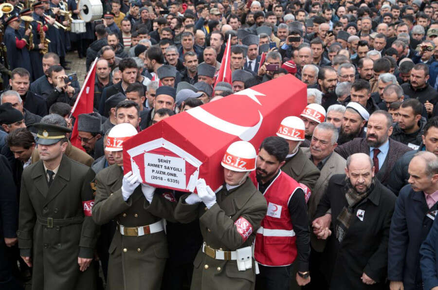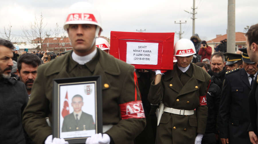 Bu arada, İdlib'deki hain saldırıda şehit olan Piyade Uzman Çavuş Halil İbrahim Akkaya, Piyade Uzman Onbaşı Güven Kurtulmuş ve sözleşmeli er Cuma Bağatur'un cenazeleri dün düzenlenen törenlerle toprağa verilmişti.