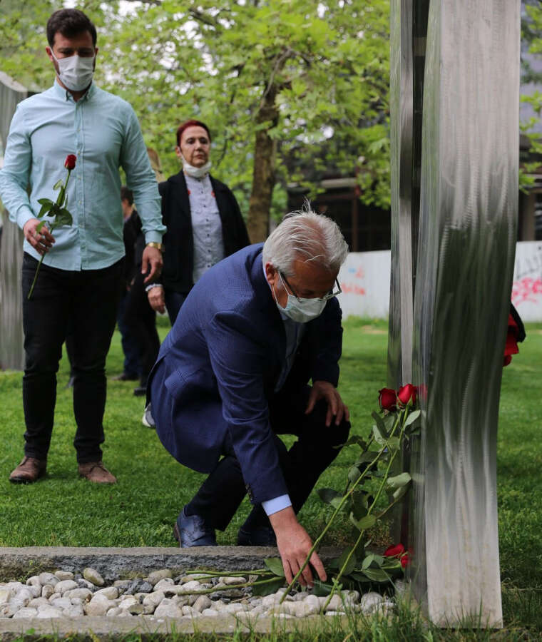 Üç Fidan Anıtı'na kırmızı güller bırakıldı.